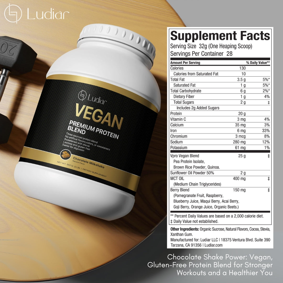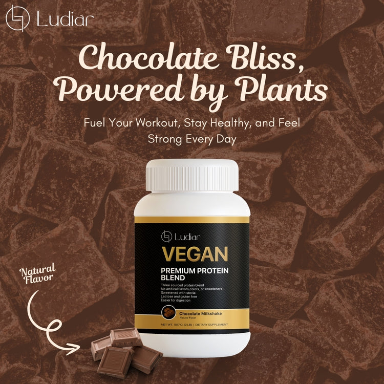 Each container of Ludiar Chocolate Vegan Protein delivers a clean, filler-free formula with premium plant proteins and antioxidant-rich superfruits — made in the USA in GMP-certified facilities, designed for better digestion and delicious results.